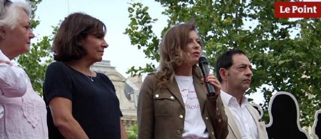 « Nous sommes ici pour dire que nous ne pouvons pas oublier et que nous n’oublierons pas. J’ai conscience, en étant une femme maire de Paris, d’avoir aussi une voix qui doit porter sur ce sujet-là (…) et je prends ma responsabilité en me joignant à cette initiative portée par Valérie Trierweiler (…) pour faire en sorte qu’on n’oublie pas », a dit la maire de Paris. « La force de mobilisation des opinions publiques est un élément très important pour lutter contre l’oubli, et je dis à toutes ces jeunes femmes qu’elles sont ici non seulement dans nos coeurs, mais au coeur de Paris », a encore dit la maire, s’adressant à la foule depuis l’estrade où sont installées les silhouettes.
