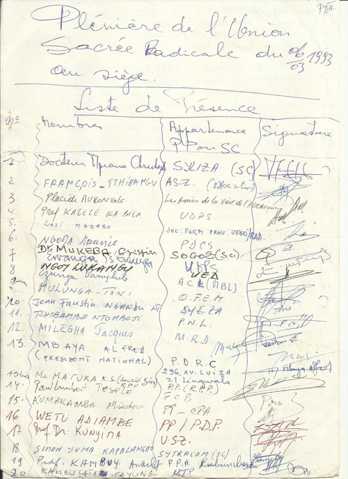 N.B. : Tous les partis faisant partie du Bureau de l’Union Sacrée étaient régulièrement présents.