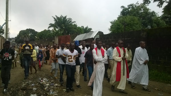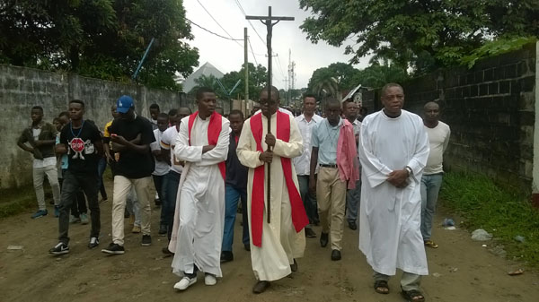 Marche du 25/02/2018: Protais Lumbu a marché aux cotés des chrétiens de la paroisse St Edouard de Binza UPN Télecom, ci dessous les images: